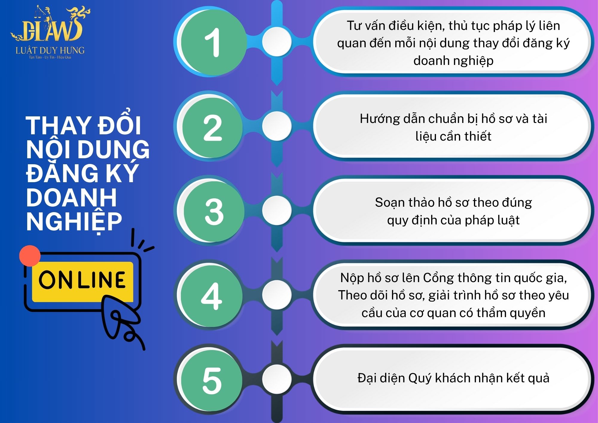 QUY TRÌNH THAY ĐỔI NỘI DUNG ĐĂNG KÝ DOANH NGHIỆP TẠI LUẬT DUY HƯNG
